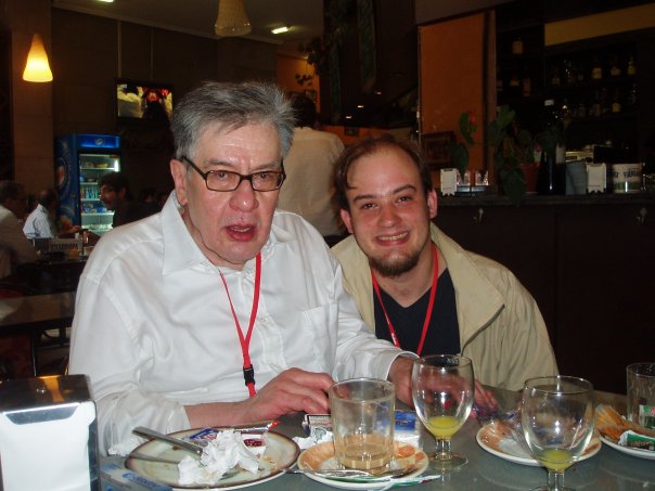 Aún no había ganado el Cervantes, y por eso su presencia pasó bastante inadvertida para los medios locales. Sólo José Luis Argüelles, que siempre le ha tenido como uno de sus maestros, tuvo la apropiada ocurrencia de hacerle una entrevista. Después, nos fuimos los tres a comer una fabada a un reputado restaurante del barrio del Carmen y me regaló un ejemplar de Tarde o temprano, su poesía completa, que aún conservo junto con otro de su novelita Las batallas en el desierto, entonces inencontrable en España y con la que yo pude hacerme gracias a las buenas artes librescas de Fritz Glöckner. Fueron aquéllas veladas muy agradables. Recuerdo a José Emilio paseando por las calles con sus andares atropellados de gorila grandullón, tocado con un horroroso sombrero publicitario que alguien le brindó para que se protegiera de los focos durante el recital que protagonizó junto a Luis García Montero y Joaquín Sabina, posando ante las cámaras con una camiseta negra en cuyo frente alguien había serigrafiado el rostro de Ángel González, sus preguntas de niño despistado y curioso en el transcurso de una cena que compartimos con Jorge Semprún. Recuerdo, también, las palabras con que nos despidió la última noche que estuvimos juntos, pocas horas antes de que él tomase el avión que le conduciría de vuelta a México: «Y díganme, ¿cómo me las arreglaré a partir de mañana para no echarles de menos?».