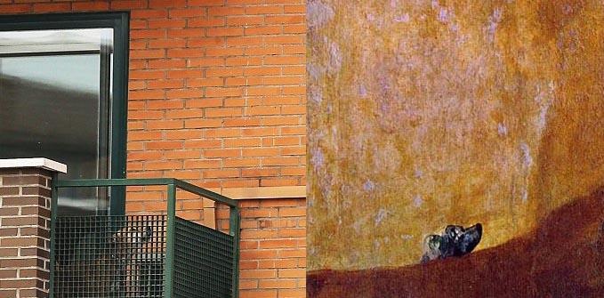 He encontrado el montaje por ahí, colgado en el batiburrillo de las redes sociales, y lamento desconocer el nombre de su autor, porque ha sabido contraponer dos imágenes separadas por dos siglos para evidenciar lo que es en realidad una misma escena atravesada por el hilo invisible del tiempo. La de la izquierda muestra a Excalibur, el perro sacrificado de la enfermera infectada de Ébola, ladrando o aullando en la terraza del piso de Alcorcón donde quedó aislado y solo después de que sus dueños ingresaran en el hospital Carlos III. La de la derecha reproduce una de las obras más enigmáticas de Francisco de Goya, adscrita a la serie de pinturas con las que el sordo genial, en esa última etapa de su vida en la que navegó continuamente sobre unas aguas arremolinadas por las turbulencias de la lucidez y la locura, decoró los muros de aquel lugar terrible y alucinógeno que debió de ser la Quinta del Sordo. Las dos imágenes poseen sobrada potencia por separado. Puestas una al lado de otra, conforman un breve mosaico que cautiva y sobrecoge, un mudo diálogo en cuyos términos reconocemos algo que acaso no podamos precisar, pero que inevitablemente relacionaremos con el sentido profundo que emana de nuestra larga andadura colectiva.